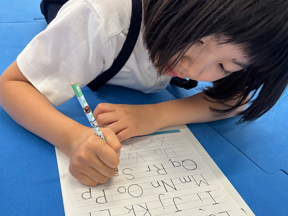 歌やゲーム、絵を描いたり、クラフト制作を通して挨拶や身近で簡単な単語を楽しみながら学んでいきます。 英語と共に幼児の時期に大切な創造力も一緒に育てていきます。 アルファベットの形にも大文字をメインに少しずつ慣れていきます。